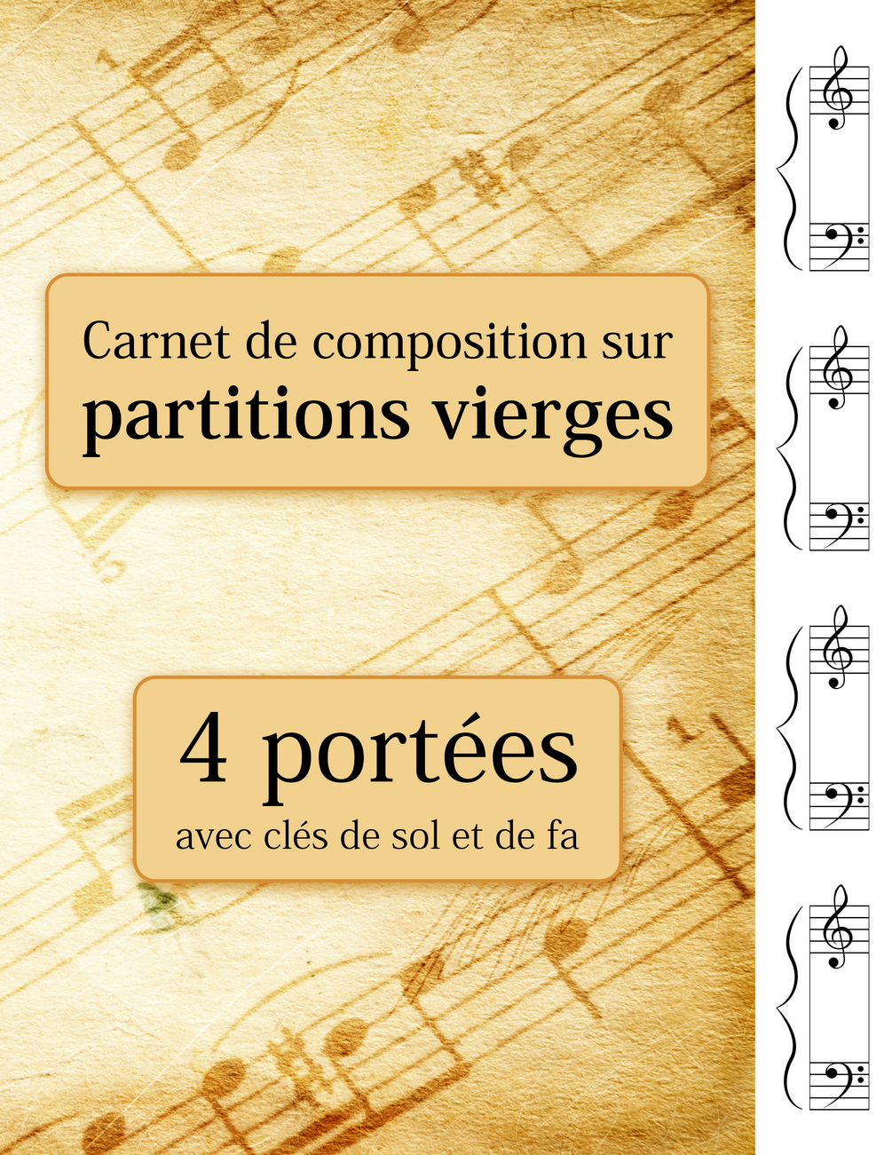 Carnet de composition sur partitions vierges - 4 portées avec clés de sol et de fa