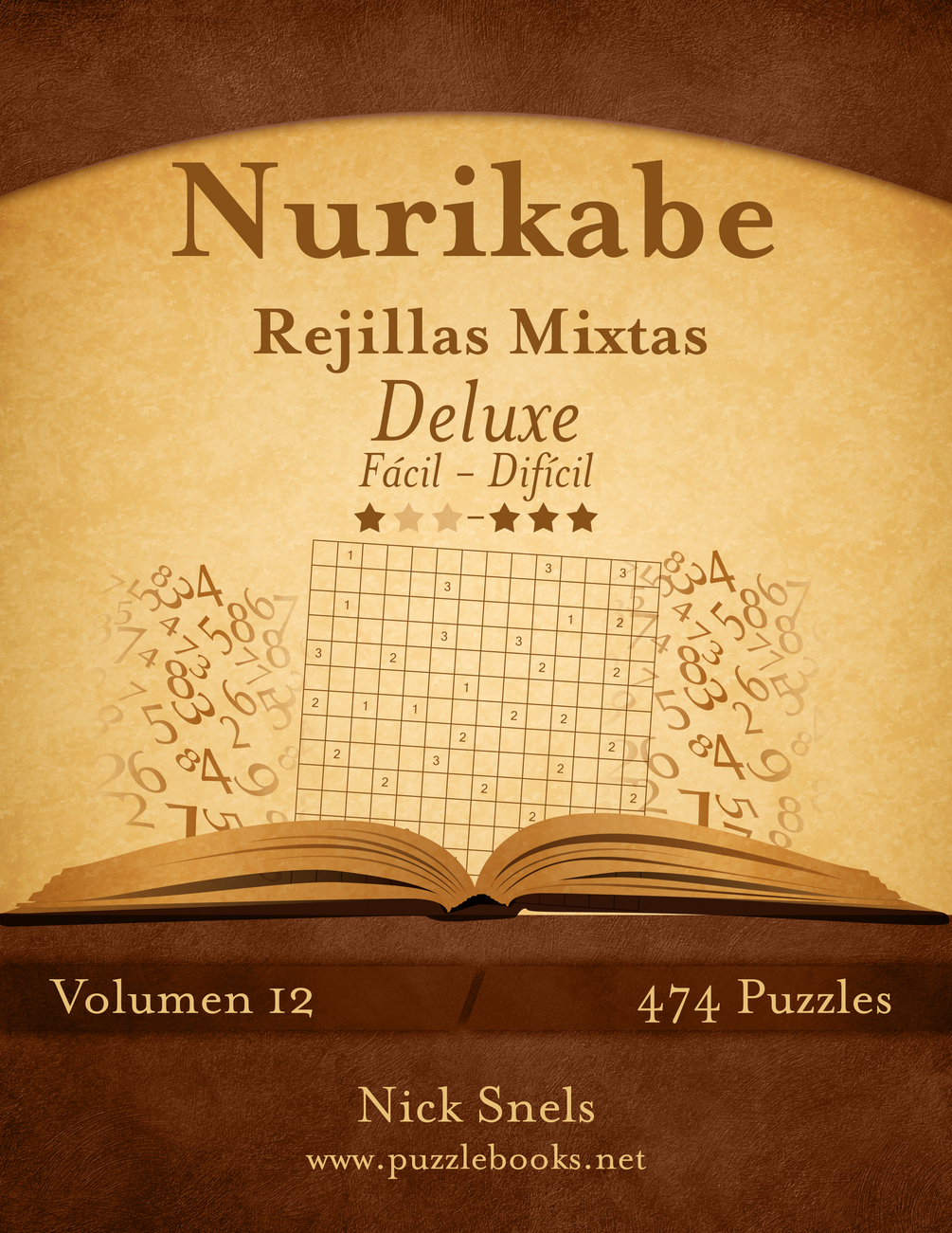 Conviértete en un maestro en la resolución de puzzles Nurikabe. Conseguirás la colección perfecta de diferentes tamaños de Nurikabe para mantenerte entretenido durante semanas. Después de resolver todos los acertijos de este libro, serás un Nurikabe Pro. Se empieza con los rompecabezas de Nurikabe fáciles, que se vuelven cada vez mayores y mayores y te vas abriendo camino poco a poco hacia rompecabezas de Nurikabe extremadamente difíciles. Una vez que empieces con este libro, no serás capaz de ponerlo de nuevo sobre la mesa. Te hemos avisado!Nurikabe Rejillas Mixtas Deluxe - De Fácil a Difícil es una colección de 474 puzzles:• 48 puzzles Nurikabe nivel fácil su tamaño de rejilla (10x10, 12x12, 14x14), con un total de 144 puzzles de nivel fácil• 48 puzzles Nurikabe nivel medio su tamaño de rejilla (10x10, 12x12, 14x14), con un total de 144 puzzles de nivel medio• 48 puzzles Nurikabe nivel difícil su tamaño de rejilla (10x10, 12x12, 14x14), con un total de 144 puzzles de nivel difícil• 42 puzzles de lógica adicionalesTe garantizo que cada rompecabezas de lógica en este libro de pasatiempos Nurikabe se ha comprobado cuidadosamente para asegurarte de que cada juego tiene sólo una solución.Ninguno de los rompecabezas en este libro aparece en ninguno de los otros libros españoles de PuzzleBooks.net.