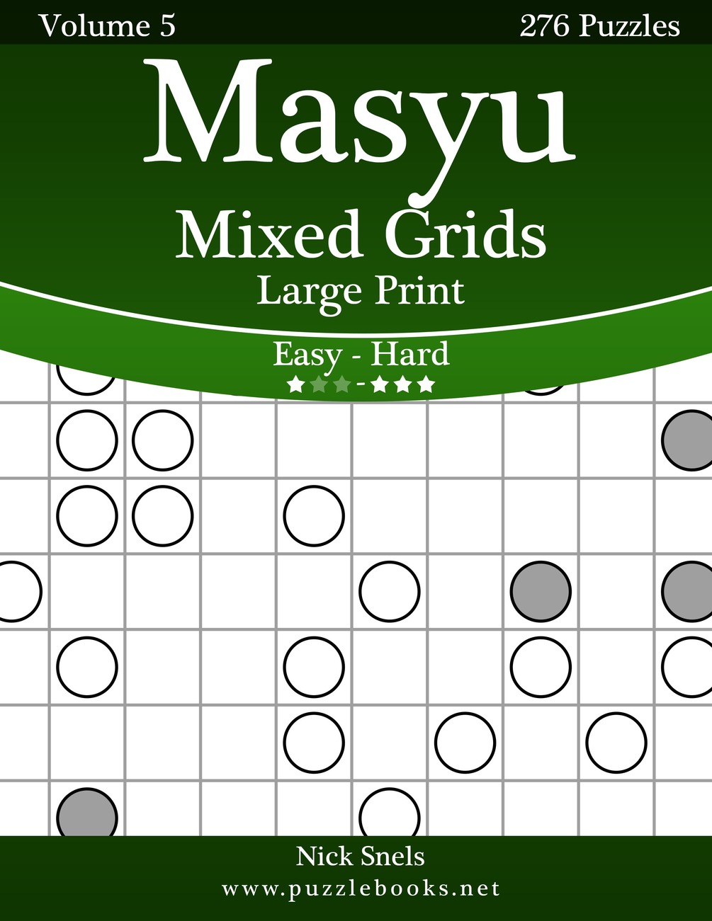 Masyu Mixed Grids Large Print - Easy to Hard is a collection of 276 puzzles: