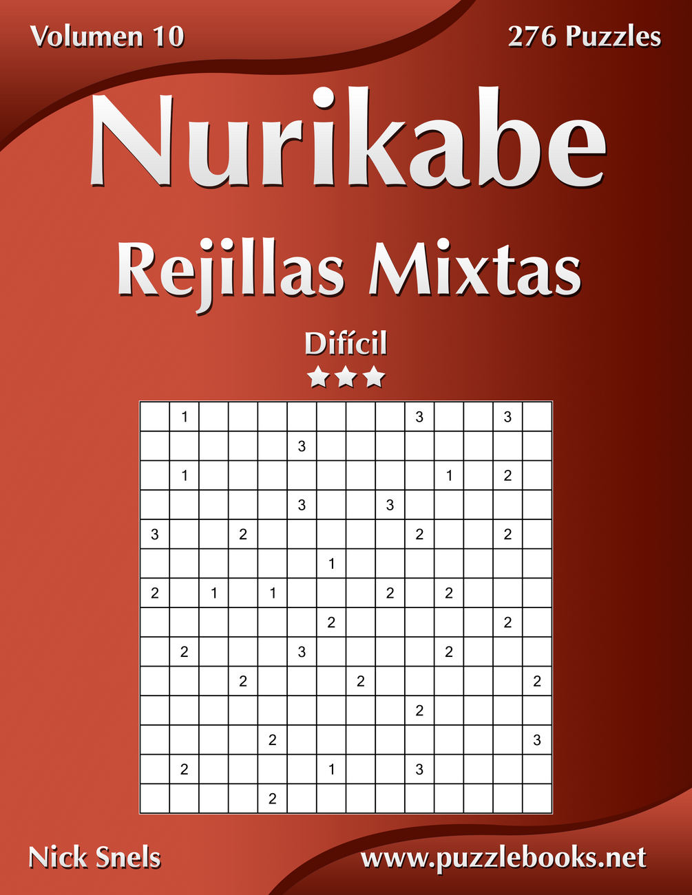Nurikabe es un rompecabezas de determinación binaria divertido y adictivo. Este libro es ideal para ti si te gusta resolver rompecabezas Nurikabe difíciles sin importarte su tamaño. No tienes que abrirte paso a través de toneladas de rompecabezas de Nurikabe fáciles antes de llegar a los complicados de verdad. Conseguirás la colección perfecta de diferentes tamaños de Nurikabe para mantenerte entretenido durante semanas. Una vez que empieces con este libro, no serás capaz de ponerlo de nuevo sobre la mesa. Te hemos avisado!Nurikabe Rejillas Mixtas - Difícil es una colección de 276 puzzles:• 72 puzzles Nurikabe 10x10 nivel difícil• 72 puzzles Nurikabe 12x12 nivel difícil• 72 puzzles Nurikabe 14x14 nivel difícil• 60 puzzles de lógica adicionalesTe garantizo que cada rompecabezas de lógica en este libro de pasatiempos Nurikabe se ha comprobado cuidadosamente para asegurarte de que cada juego tiene sólo una solución.Ninguno de los rompecabezas en este libro aparece en ninguno de los otros libros españoles de PuzzleBooks.net.