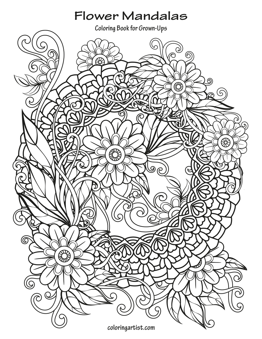 Flower Mandalas Coloring Book for Grown-Ups
