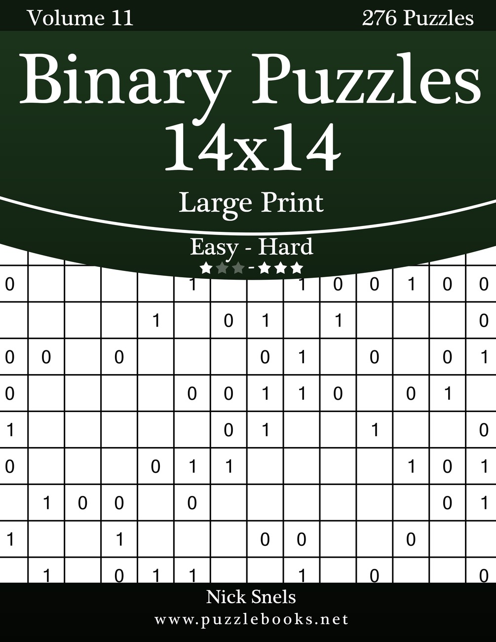 Binary Puzzles 14x14 Large Print - Easy to Hard is a collection of 276 puzzles: