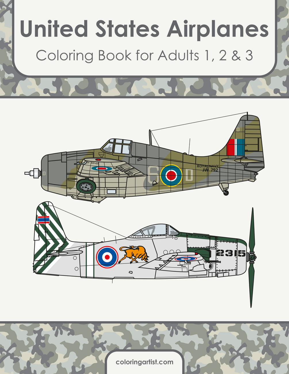 United States Airplanes Coloring Book for Adults 1, 2 & 3