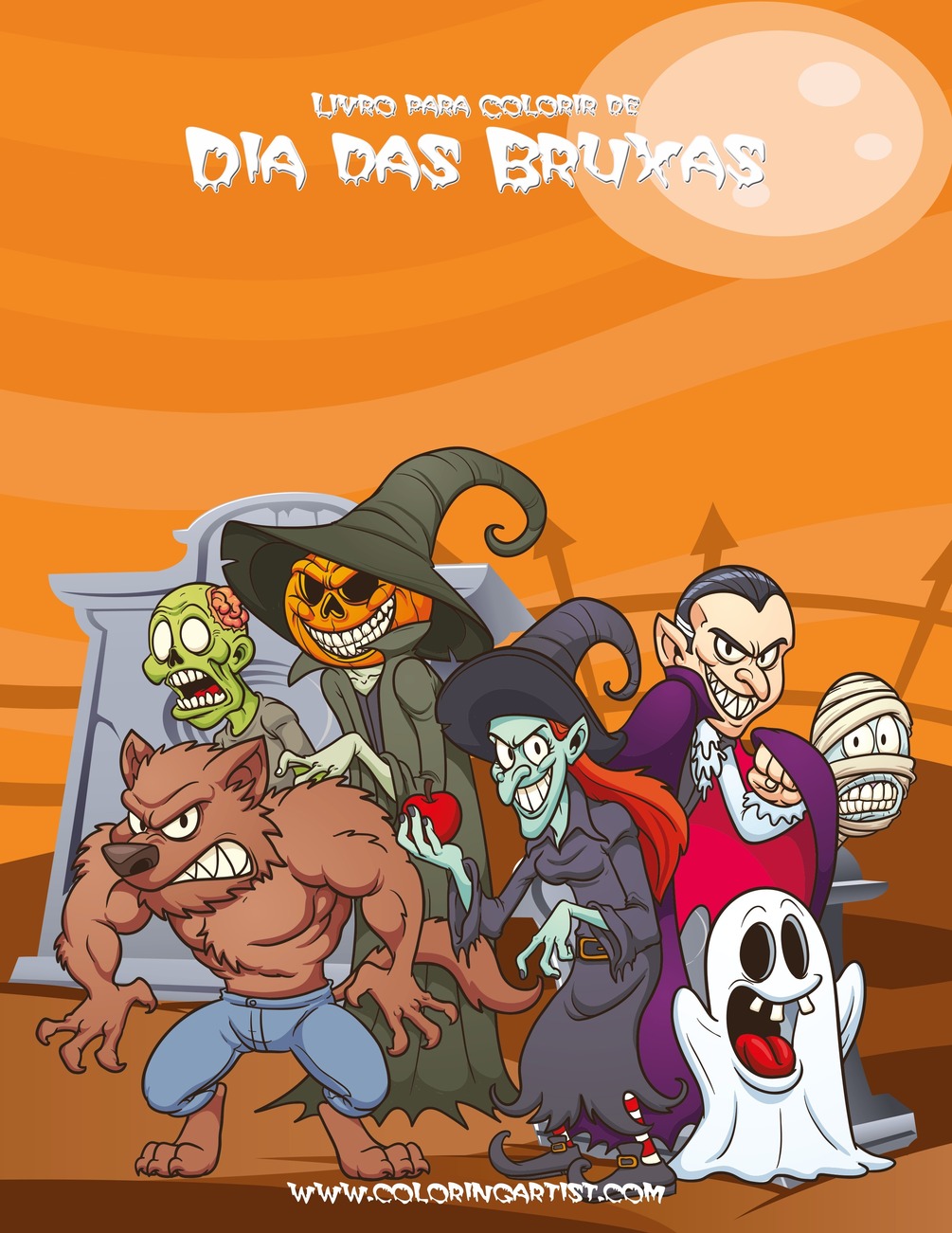 Este livro para colorir do Dia das Bruxas é composto por 50 páginas para colorir assustadoras sobre o Dia das Bruxas. Contém páginas para colorir bruxas más, vampiros, zumbis, múmias, morcegos, fantasmas, casas assombradas, crânios e esqueletos. Este livro para colorir é ideal para crianças que amam os terrores do Dia das Bruxas.