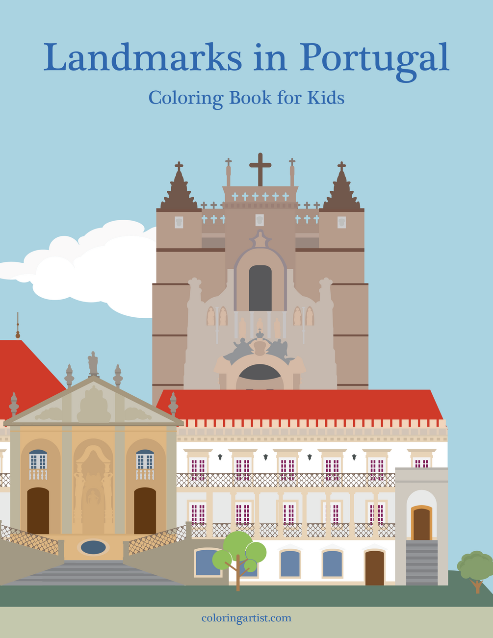 Landmarks in Portugal Coloring Book for Kids contains 25 coloring pages with landmarks from cities all over Portugal. All images are in exactly the same style as the cover. The following Portuguese landmarks are featured: