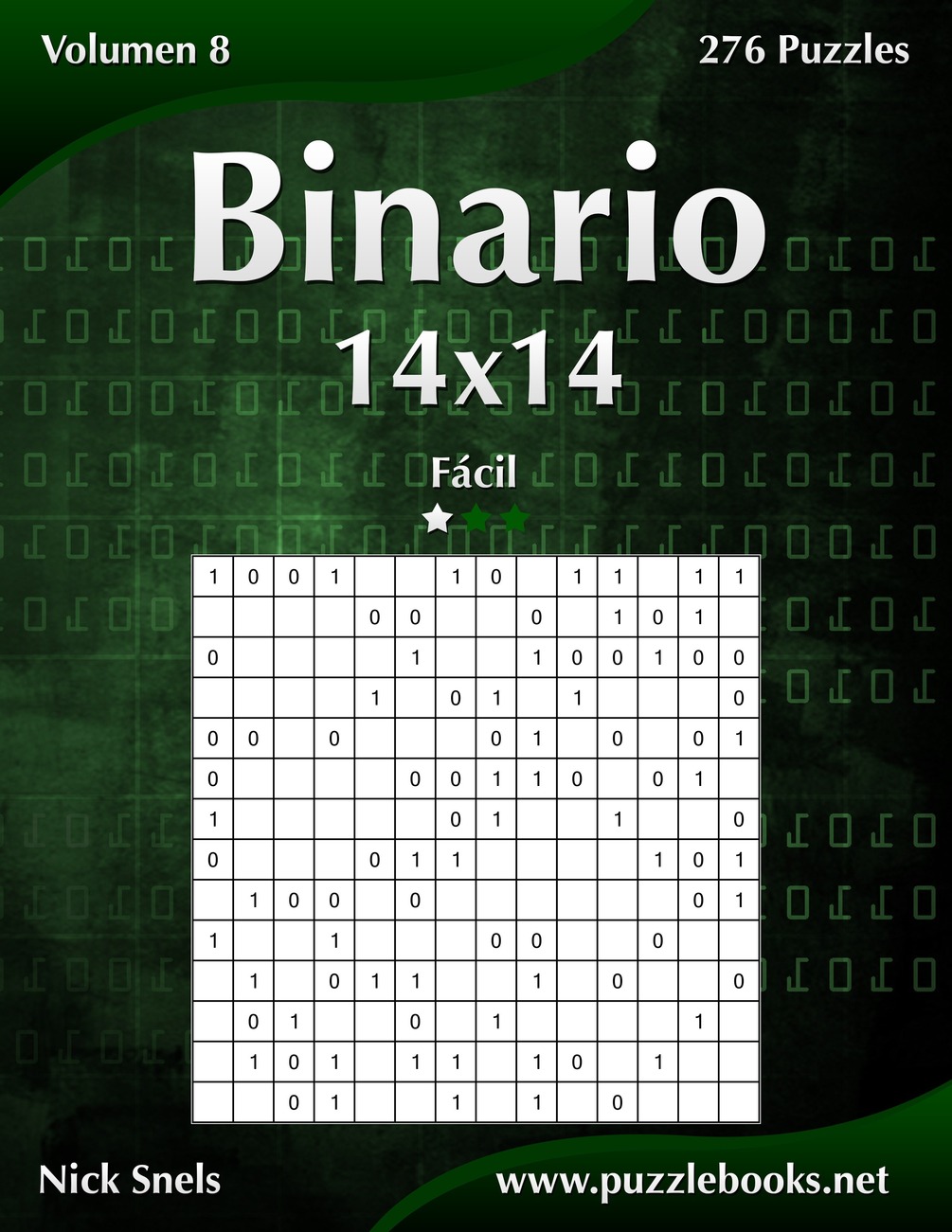 Binario es un juego de lógica divertido y adictivo. El objetivo parece ser muy sencillo, rellenar la rejilla con los números 0 y 1. Sin embargo, no te dejes engañar por su apariencia, Binario es un juego de lógica realmente desafiante y un excelente pasatiempo para el cerebro. Este libro es ideal para que los principiantes aprendan Binario. Una vez que empieces con este libro, no serás capaz de ponerlo de nuevo sobre la mesa. Te hemos avisado!