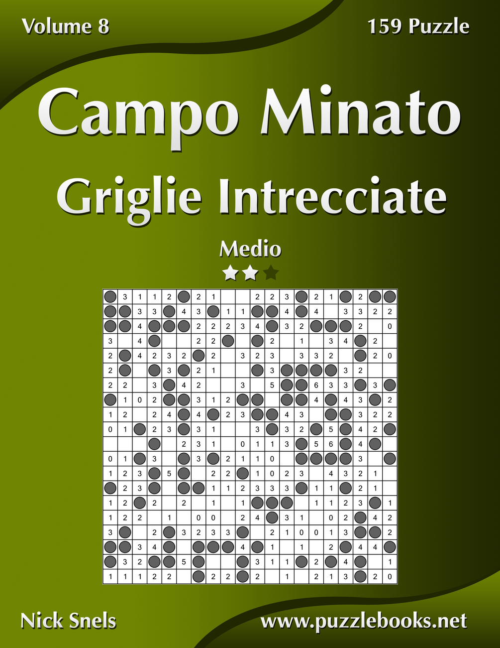 Il Campo Minato è ben noto grazie alla sua diffusione tramite Microsoft Windows. Questo libro è l'ideale se ami risolvere i Campo Minato, non importa di che dimensione, ma vuoi velocizzarti nella soluzione di quelli di livello più alto. Avrai il mix perfetto di dimensioni diverse di Campo Minato che ti terranno impegnato per settimane. Una volta che prenderai in mano questo libro non lo lascerai facilmente. Sei avvisato!Campo Minato Griglie Intrecciate - Medio è una raccolta di 159 puzzle:• 40 Campo Minato 20x20 puzzle medi• 40 Campo Minato 25x25 puzzle medi• 40 Campo Minato 30x30 puzzle medi• 39 giochi extraLo scopo del Campo Minato è individuare le caselle contenenti le mine. Alcune caselle sono numerate, e tale numero corrisponde alla quantità esatta di mine che si trovano nelle otto caselle adiacenti. Le caselle numerate non contengono mai le mine.Garantisco che ogni gioco di logica contenuto in questo volume è stato accuratamente testato, per assicurare che esista una sola soluzione.Nessuno dei giochi contenuti in questo volume apparirà in altri PuzzleBooks.net libri italiani.