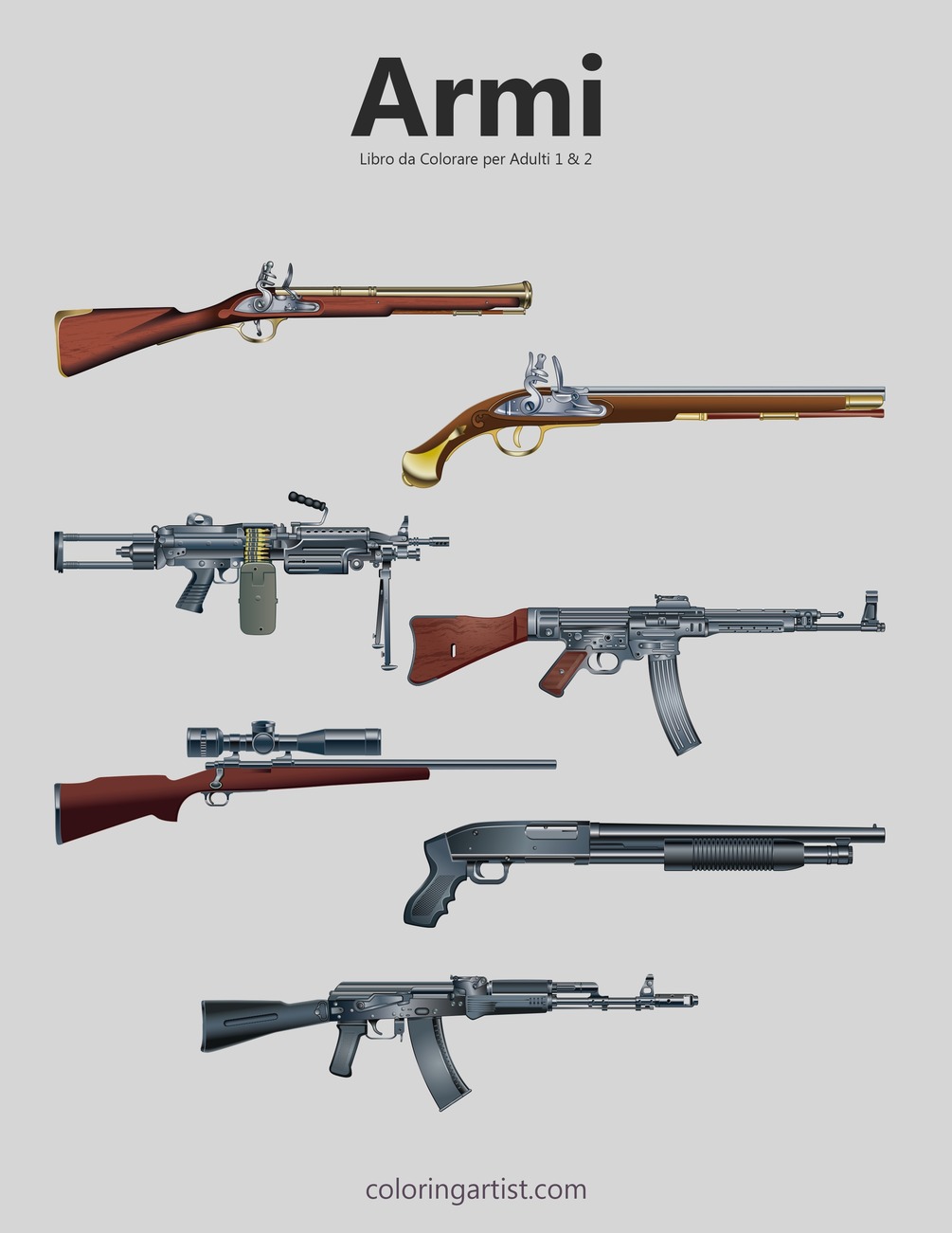 Ti piacciono le armi? In tal caso questo libro da colorare con 80 armi, pistole, fucili, moschetti e revolver fa al caso tuo. Comprende le seguenti armi: