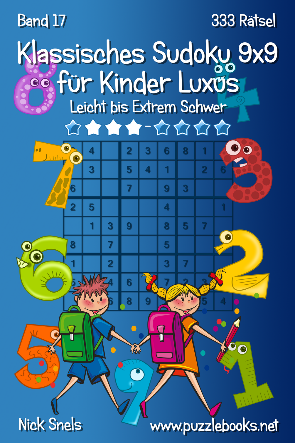 Sudoku ist ein spannendes und süchtig-machendes Logikspiel. Sudoku lehrt deinem Kind schon in jungen Jahren logisches und schlussfolgerndes Denken. Das Sudoku verbessert kritisches Denken und die Fähigkeit schnelle Entscheidungen basierend auf verfügbaren Daten zu machen. Sudoku ist ein Gedankenspiel, das hilft den Geist des Kindes zu trainieren. Sudoku erfordert Liebe zum Detail – das Erkennen von Mustern und Möglichkeiten und den Richtigen Moment, um seinen Zug zu machen. Sudoku ist nicht nur lustig und interessant – es kann auch Ihre Kinder besser auf Erfolg in der Schule und im Leben vorbereiten.Klassisches Sudoku 9x9 für Kinder Luxus - Leicht bis Extrem Schwer ist eine Sammlung von 333 Rätseln:• 78 leichte Sudoku 9x9 Rätsel• 78 mittlere Sudoku 9x9 Rätsel• 78 schwere Sudoku 9x9 Rätsel• 78 extrem schwere Sudoku 9x9 Rätsel• 21 zusätzliche Logik-PuzzlesUm ein Sudoku zu lösen, muss jede leere Zelle mit einer Zahl ausgefüllt werden. Die Zahlen sollen in jeder Zeile, in jeder Spalte und in jedem Block genau einmal vorkommen.Ich garantiere, dass jedes Logik-Puzzle in diesem Sudoku Rätselbuch sorgfältig geprüft wurde, um sicherzustellen, dass jedes Puzzle nur eine Lösung hat.Keines der Rätsel in diesem Buch wird in anderen deutschen PuzzleBooks.net Büchern erscheinen.