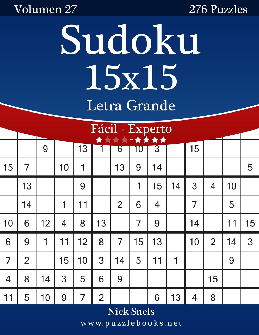 Sudoku 15x15 Impresiones con Letra Grande - De Fácil a Experto - Volumen 27 - 276 Puzzles