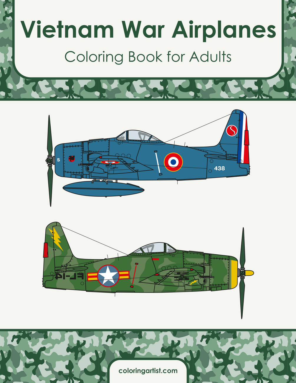 30 coloring pages filled with sideviews of airplanes flown during the Vietnam War. Perfect for all airplane or aircraft lovers. The book features the following airplane models: