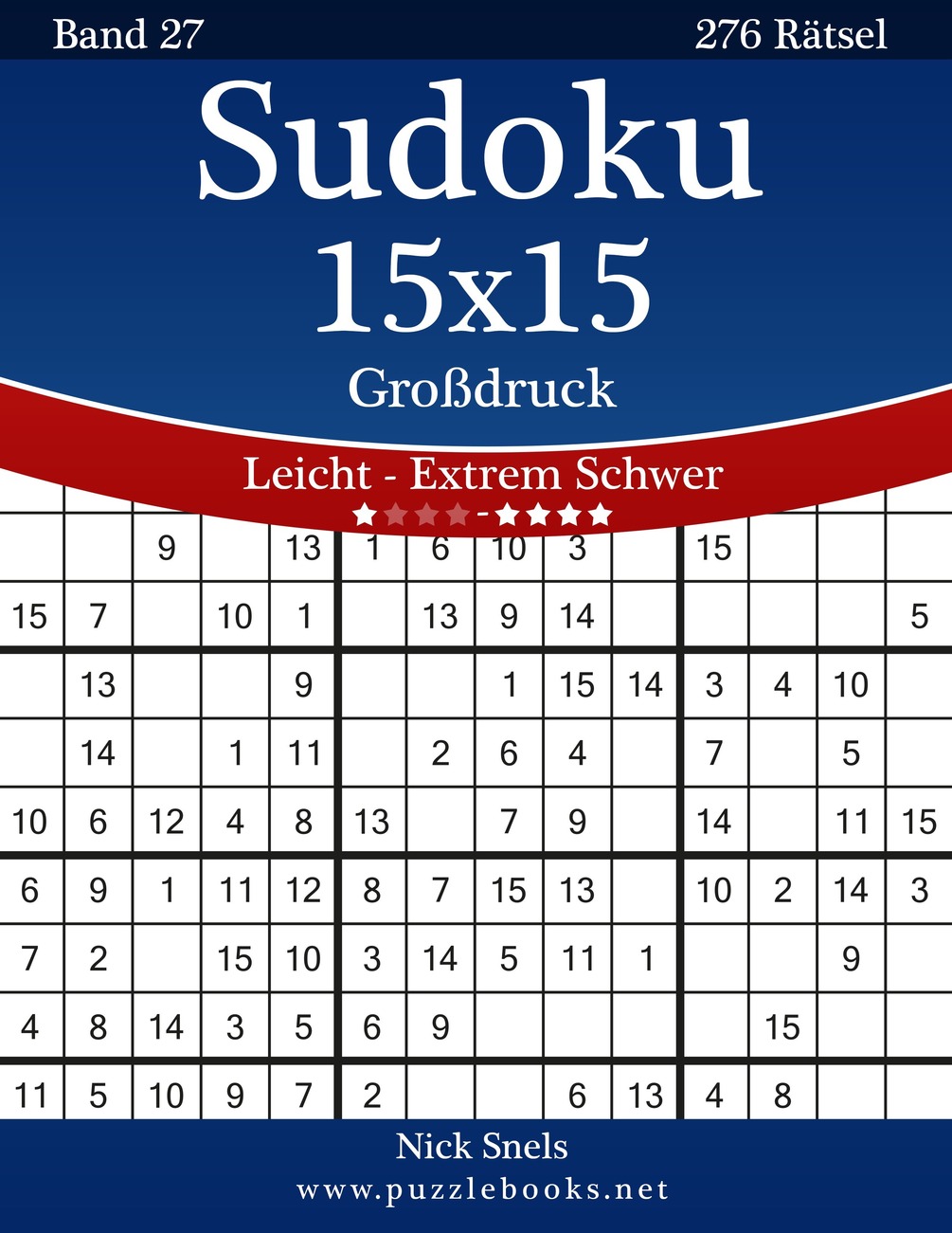 Sudoku 15x15 Großdruck - Leicht bis Extrem Schwer - Band 27 - 276 Rätsel